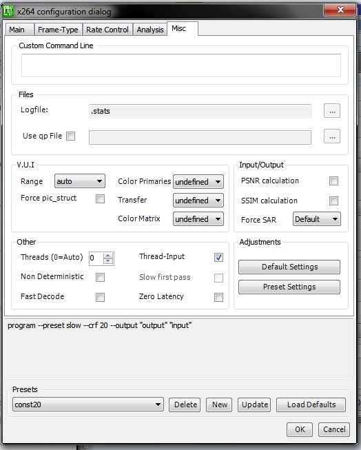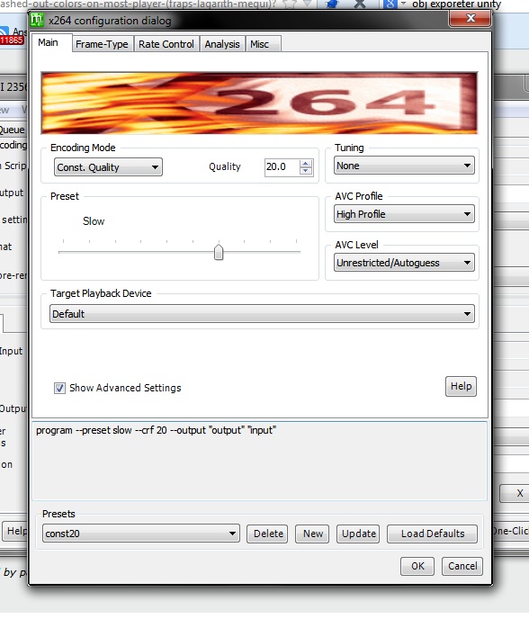 Writing application : x264 r2334 a3ac64b
