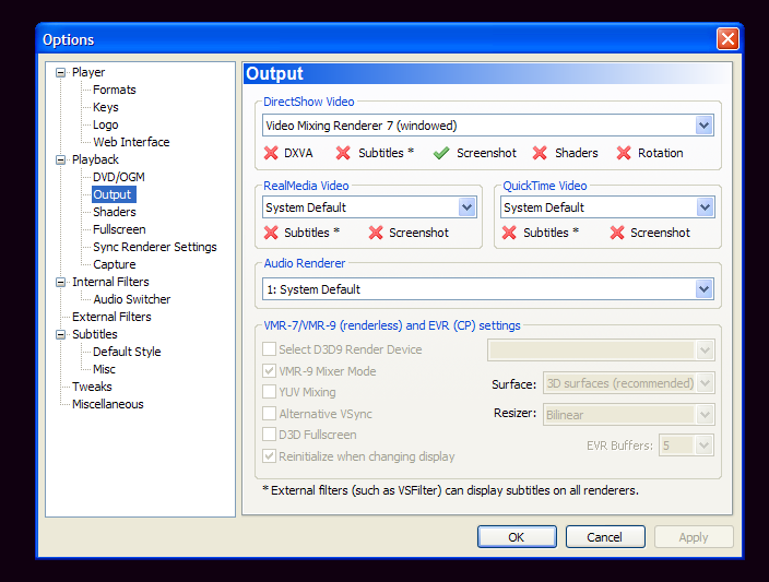 Note: It doesnt matter how this is achieved, I just wanna be able to play videos with VMR 7 (windowed) even with another player and put subtitles to them. By far I find MPC-HC to be the best for this but if theres another please tell me.