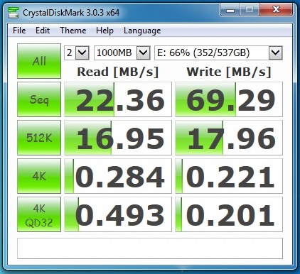 EDIT: Just did crystal disk mark on the platter type hard drive again, and got pretty much the same results except the read speed was half of what it was before, it just read 9MB/s, all the other values were pretty much the same. Guess I'll try defragmenting and see what happens.Last edited by RoldGold; 29th Mar 2014 at 10:50.