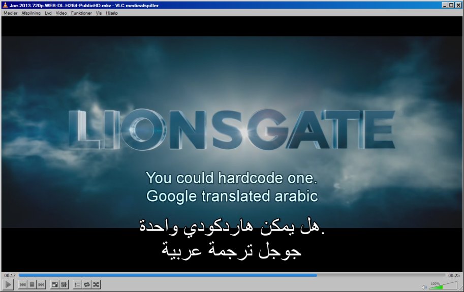 An example hardcoding english with MediaCoder and played by VLC: