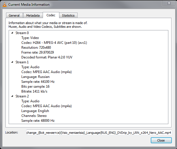 I have this MP4 and MKV DVD rip of a 20 minute episode (which I already own) that someone else made. Here is what VLC says about both of these files.