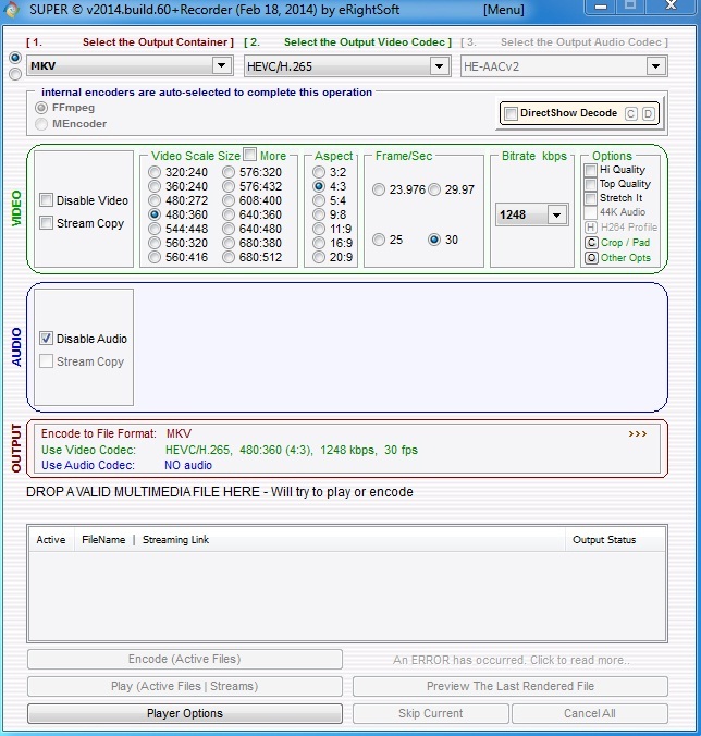 Hi. I've noticed that when choosing a resolution to encode in HEVC in SUPER, it has only a number of preset resolutions, and when I try to encode a widescreen movie, it gets stretched. I was wondering is there a way of setting a custom resolution, like in x264 in SUPER if you click "more" twice it comes up with the dialog box where you can enter a custom resolution. If no, then do you know of any other free gui HEVC encoders (other than DiVX)? Thanks!