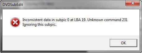 3. DVDSubEdit: I opened the full domain, and had several times the "Inconsistent data" problem. So I couldn't modify the subs position, nor colors.