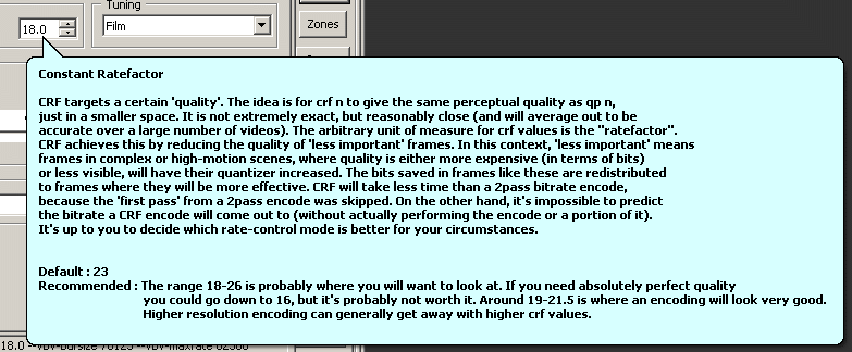 Still doing some tests... been looking at this site for some good details, also a link in there for the advanced tab. Learning curve for sure, since again, until now all I used VidCoder for was taking a big video and making it smaller, but, would be nice to be able to rip some stuff to the media server and have the same quality level as what I see online. -