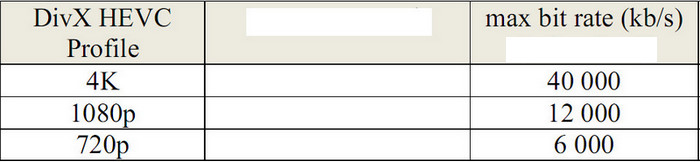 9. @david55: see http://labs.divx.com/system/files/DivX_HEVC_Profiles.pdf (last page) for an overview which resolution implies which profiles and what bit rate restrictions are used