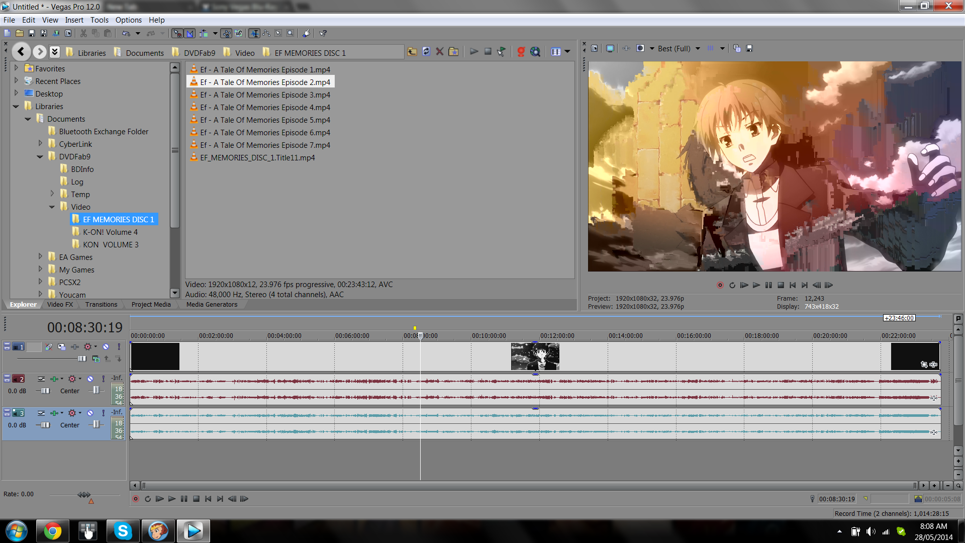 Every time I insert a Blu-ray clip that I have ripped off a BD disk, or something along those lines into Sony Vegas 12.0,