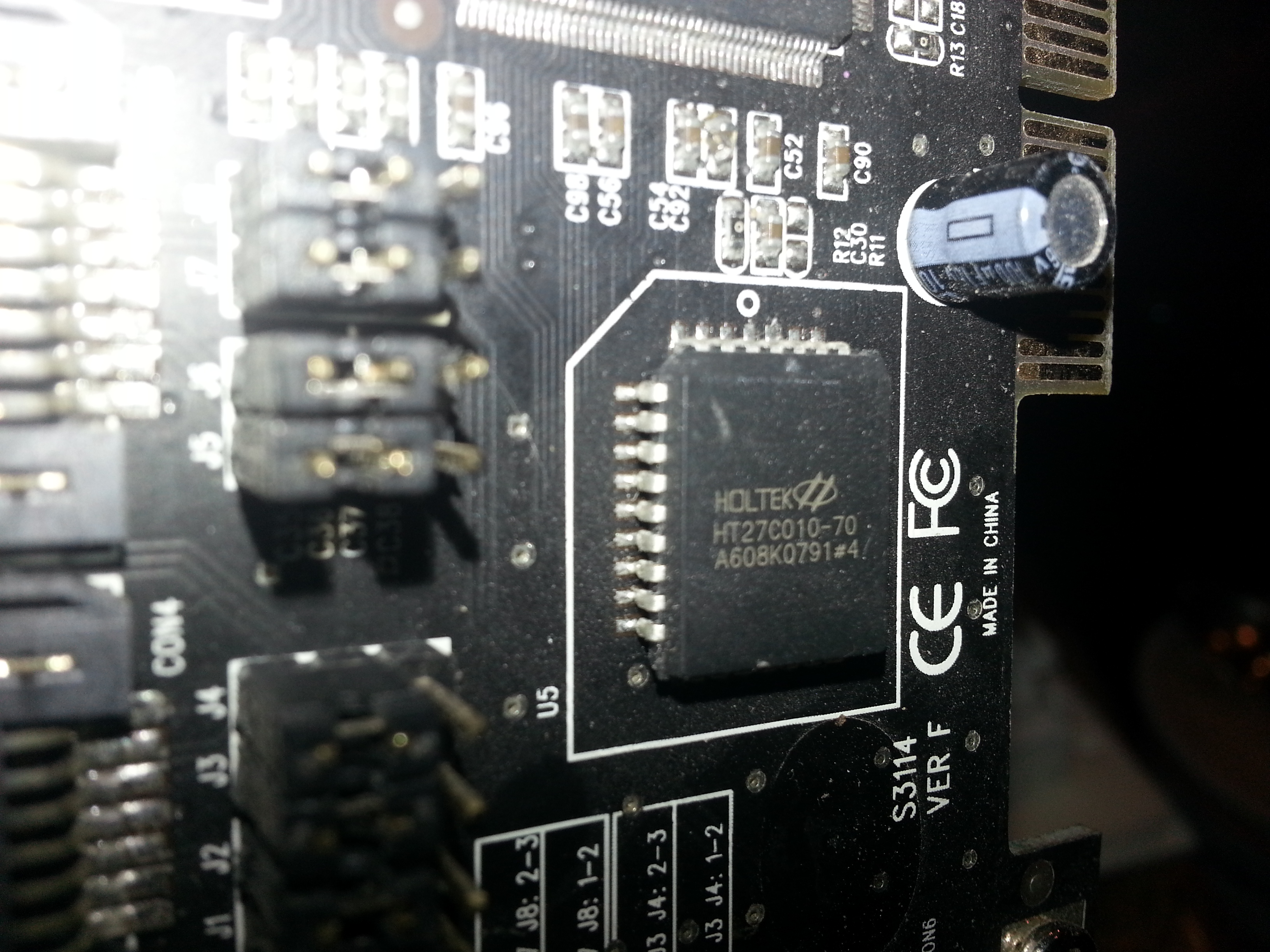 17. The Holtek 27C010 is the chip that holds the firmware, the "27C" means it's a PROM. If it had a window it would be an EPROM and could be erased with a UV lamp, but it would still have to be reprogrammed with a chip burner.
