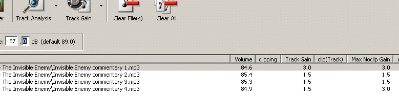 Because I use the mp3gain GUI, if I'm wanting to adjust the volume of a bunch of files so they all sound the same, I run a ReplayGain scan and adjust the target volume until the file with the loudest peaks reaches maximum. It more often than not ends up being between 83dB to 86dB. Once I know the highest target volume I can use I apply ReplayGain.Last edited by hello_hello; 8th Jun 2014 at 20:51.