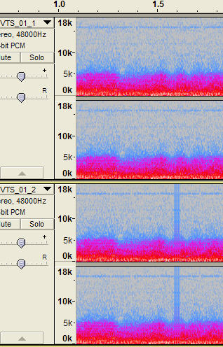 (1st is the processed final VOB , 2nd is the original VOB , both loaded directly into audacity (not demuxed audio)