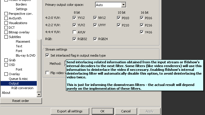 Here's how it works with ffdshow doing the decoding (if you're not familiar with ffdshow it's a DirectShow decoder which can be used with players such as MPC-HC or WMP etc). I guess it explains what VLC doesn't do.