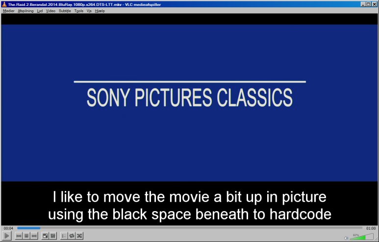 I prefer MediaCoder to hardcode SRT. It offers me flexibllity and nice looking fonts. For movies with an aspect of 2.35(2.4):1 I prefer to keep the subtitle free of the movie like this:
