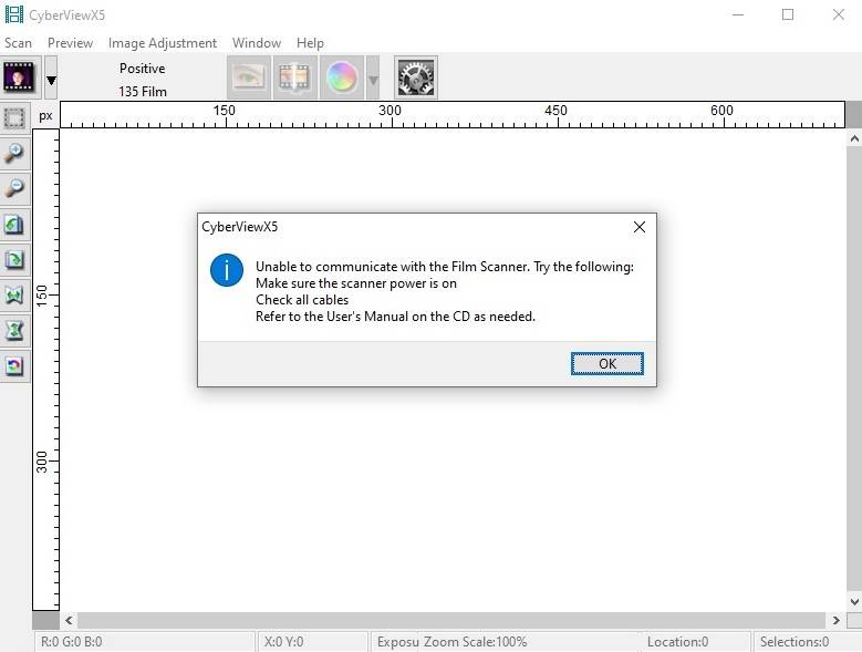 Found installer for: CyberViewX 5.18.12, but it gives "Unable to communicate with the Film Scanner."