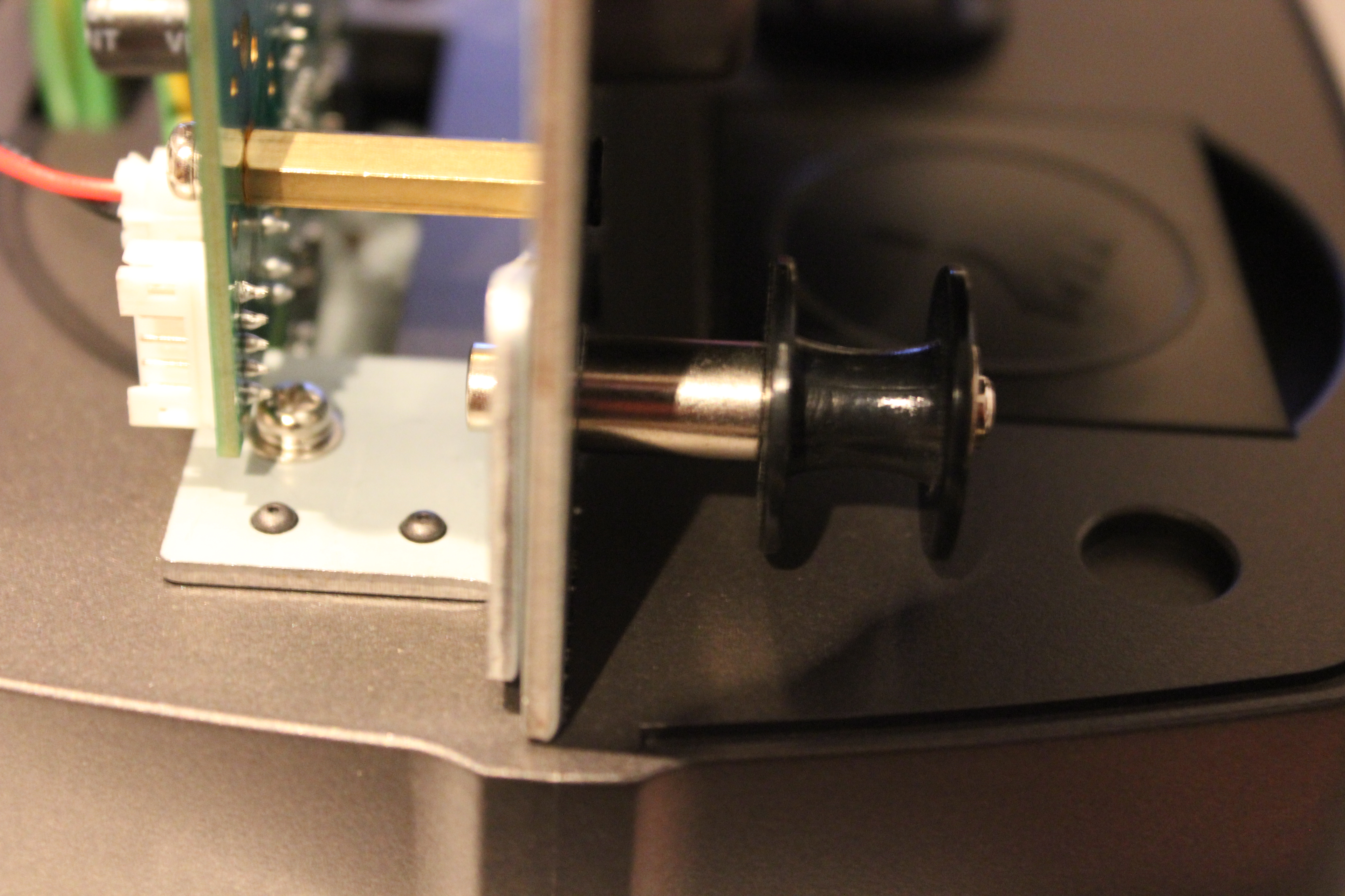 19. ok my lower sprocket mod has worked well. now the sprocket can slide in and out to adjust its position, so the film threads onto the takeup spool properly. i also put some black tape on the board just in case the post happens to push against it.Click image for larger version