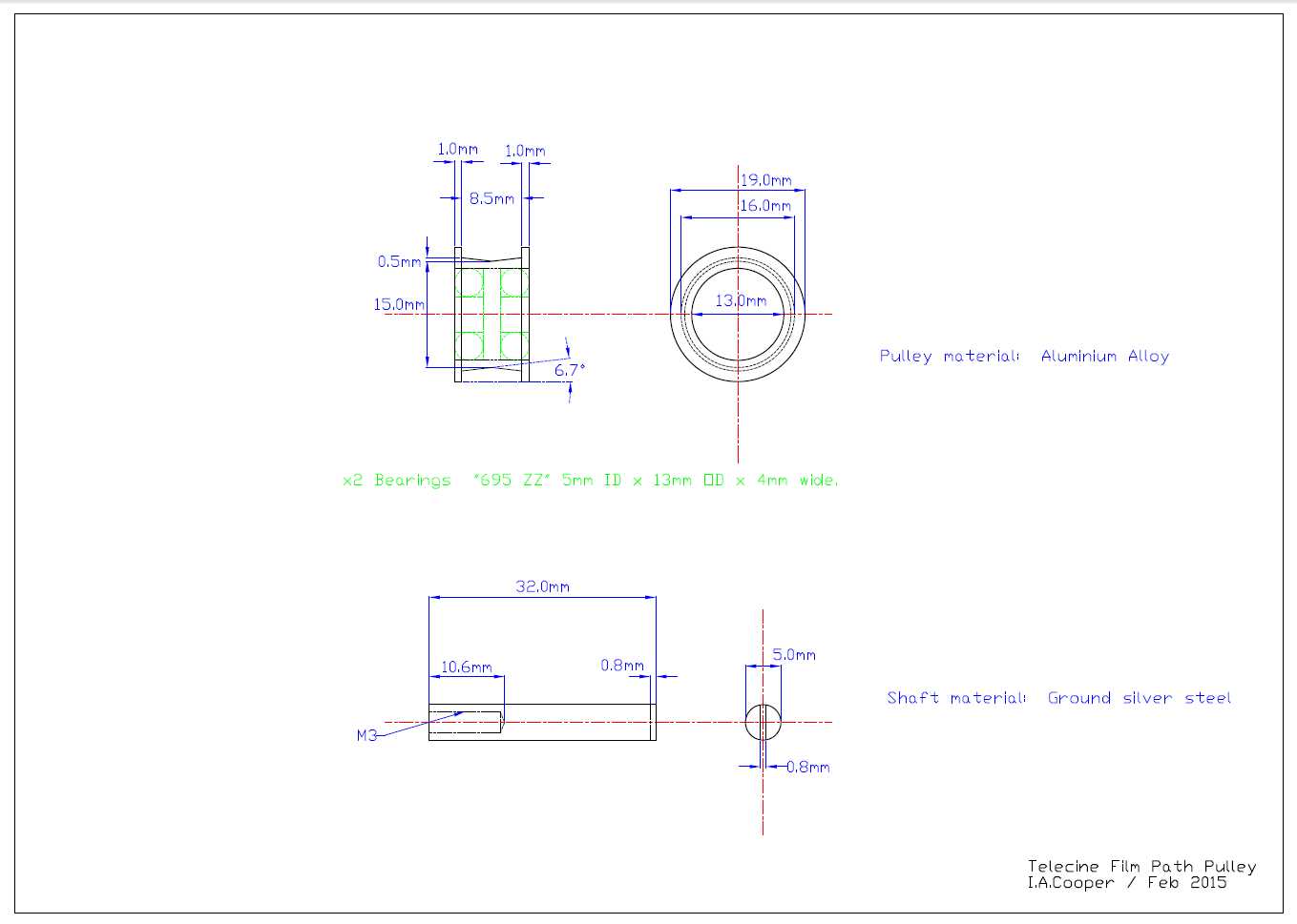 I had already jokingly asked the guy who made the pulleys if he'd be prepared to make some more for sale! He points out that he only does such things in his spare time but if it is just one or two sets then he might be persuaded. Here's his design drawing showing the tiny ball bearings: