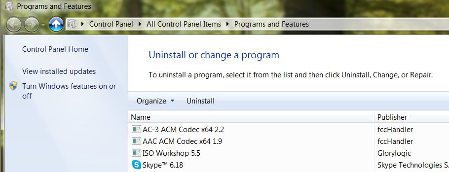 Try install codec by right click on AC3ACM64.inf file and select Install