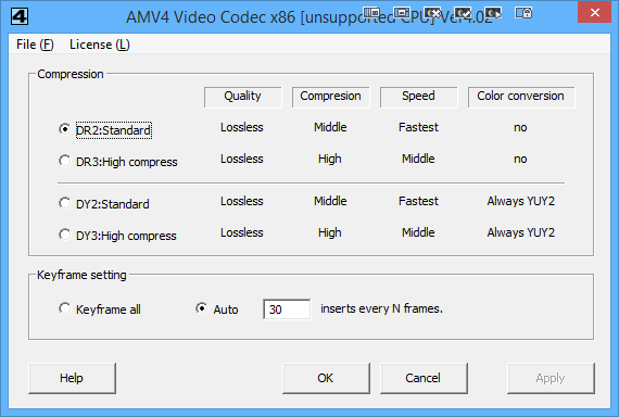 AMV4 Codec settings: