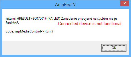 Really in Windows 8.0 all was working with AmaRecTV 3.00c and 2.3.1