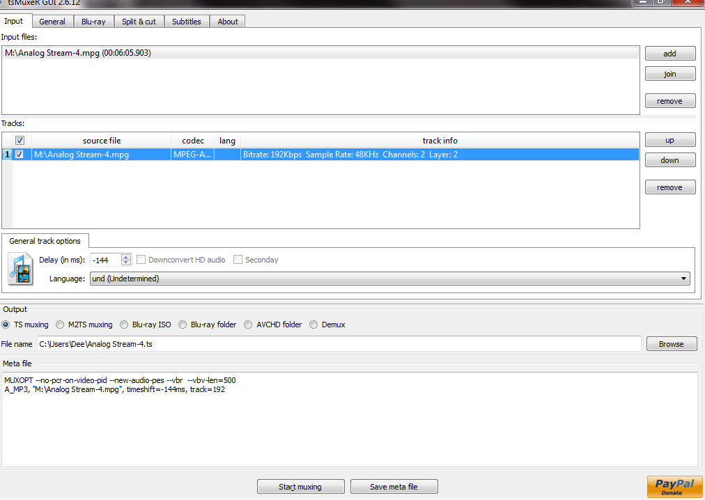 5) Start Muxing.