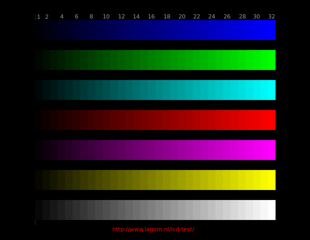 I took your advice and did some testing with a color bands image from http://www.lagom.nl/lcd-test/. Here are the results: