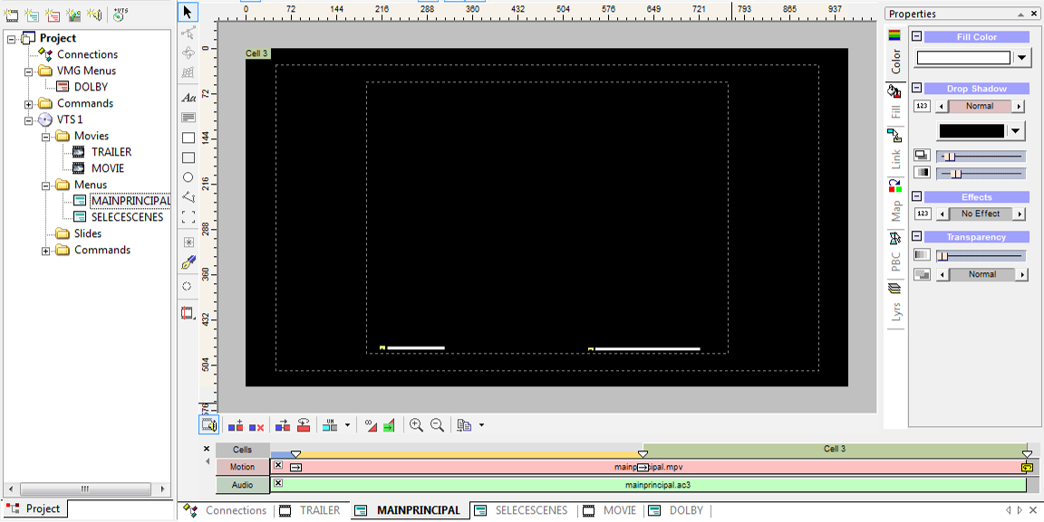 Now, pressing as much as the TITLE BUTTON and MENU BUTTON buttons for the first time to start the DVD, you must go to the beginning of the animation, and when pressed a second time as much as the TITLE BUTTON and MENU BUTTON this must happen automatically to the cell 3.