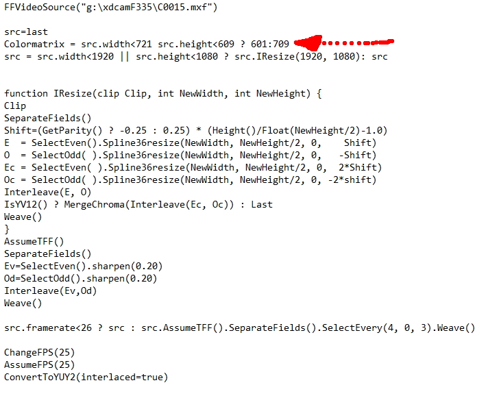 it is just taken out of even more larger script, so some things might be missing, point is that you'd have to add lines while creating avisynth script depending on frame rate etc.