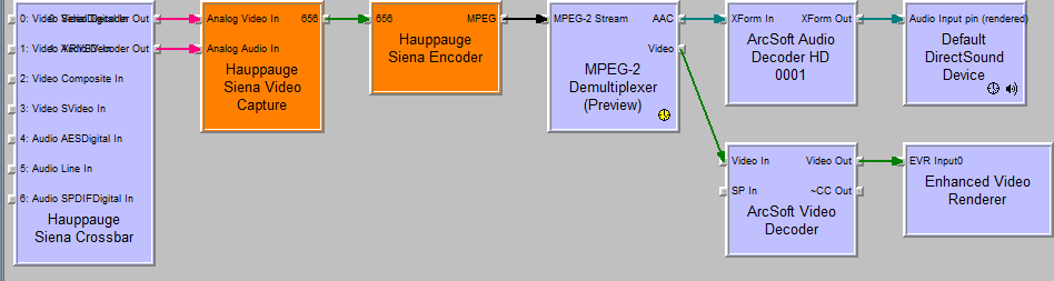 Hopefully an easy one, but one I just can't work out! When I'm using Graph Studio in conjunction with my HD PVR2, I need to use the MPEG 2 Demultiplexer to go into my video and audio decoders. This is a typical graph I would want for displaying the output from the HD PVR2