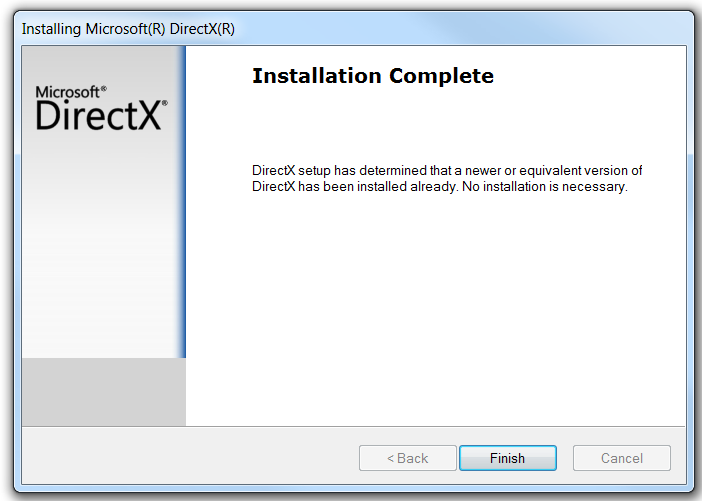 And, I tried to install DirectX from http://www.microsoft.com/en-us/download/details.aspx?id=35