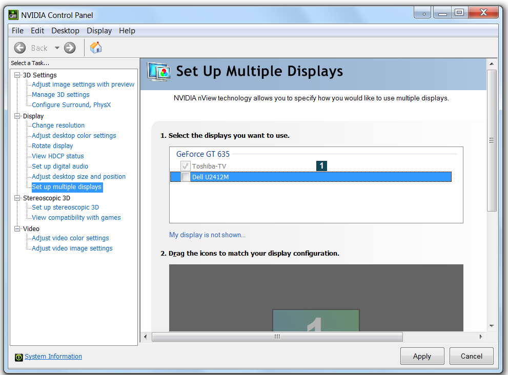 Dual Display for Dell U2412M and Toshiba HDTV