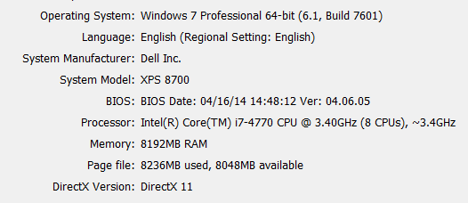 Like I said, my desktop is a Dell XPS 8700 with the for the following components: