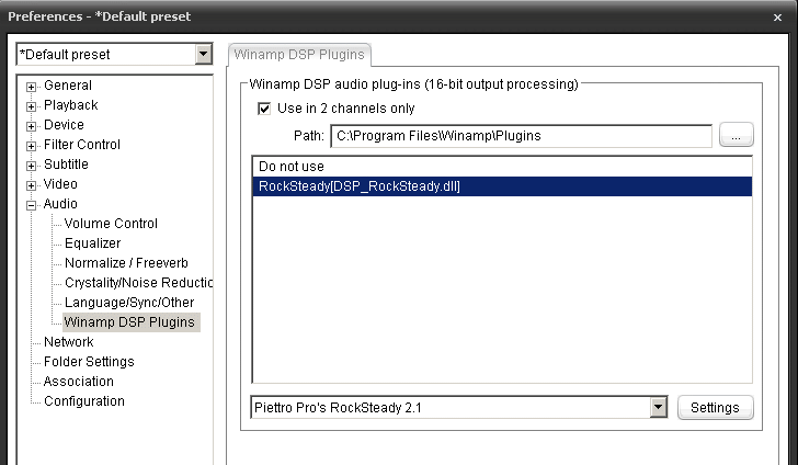 On the side note, I currently have normalizer (32-bit simple arithmetic) enabled to boost the current audio level as without it, the sound itself is considerably low for any files that I play. Would the "RockSteady Winamp DSP" be a more viable choice instead of enabling Potplayer's normalizer? Considering I mostly play stereo input, fluctuating volume is not really an issue as I don't mix around playing different inputs though I'm not sure if I should go for Potplayer's normalizer or RockSteady as alternative.