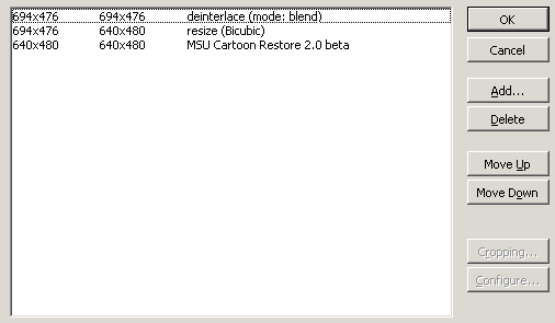 I have an old bootleg (unfortunately) anime I'm trying to rip and improve the video. I've managed to get VirtualDub and find a few plugins (a feat for me coz I'm pretty Windows/video stupid here).