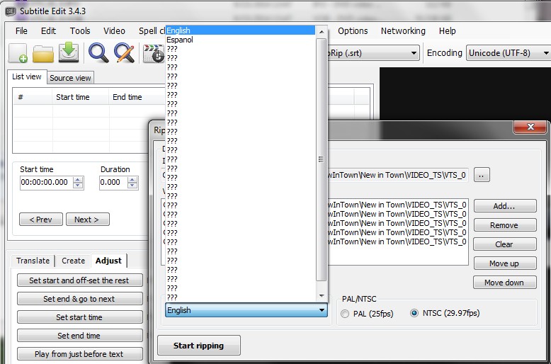 once they are ripped, you can save as SRT from the main page. Subtitle edit has a lot of sync methods also but the one easiest is to load your COMBINED VOBS into the editor and use the Visual Sync to set the first and last subtitle and then let it sync.