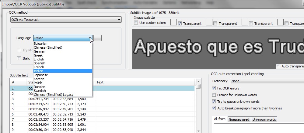 Could you post an screendump like image #3 in Budman1's post (#4) above? or the demuxed .sup file?When I put the sub file into subtitle edit and ran the OCR it just started putting in gibberish characters. How can I fix this?