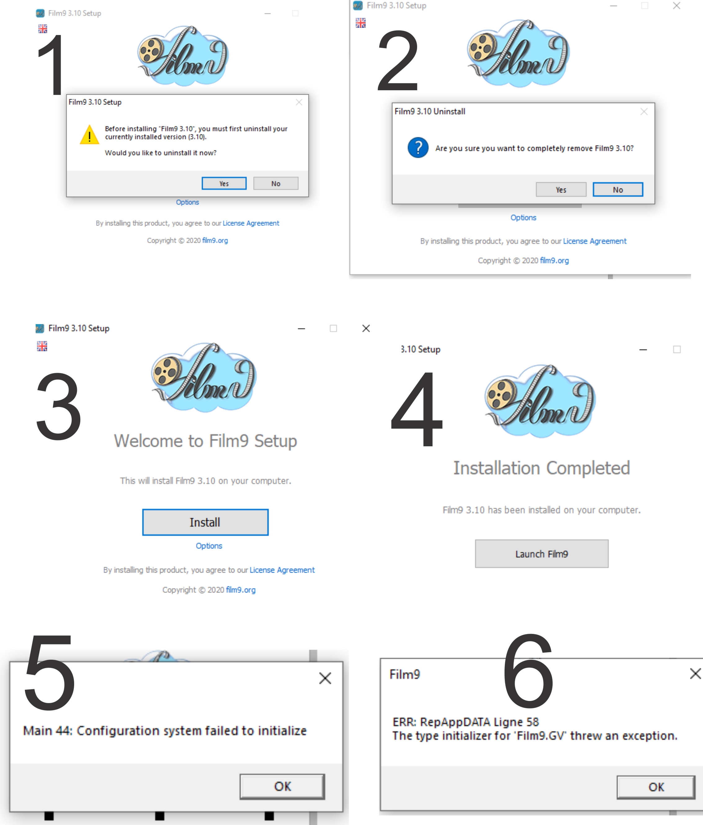 2 days ago , I attempted to open film 9 and suddendly an exception error message appeared....Strange, I thought, and I attempted to open it again...an unfortunately the exception error continued. Frustrated , I uninstalled the program and re installed it. The same error appears preventing the program from opening.
