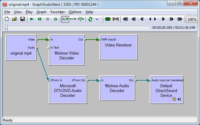 I have learned how to choose the preferred filters to use (in W8 64 bits), I've learned how to make Avisynth work in a 64 bits environment, I begin understanding GraphStudio ... by the way: in your GraphStudio screenshot it seems you decode audio twice, first with MS DTV-DVD audio decoder and after that with ffdshow audio decoder dont you? Why?