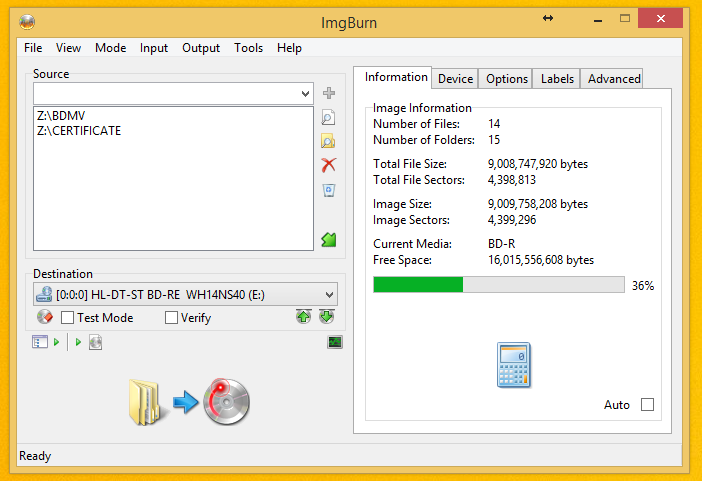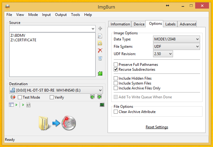 I mapped the folder containing the BDMV and CERTIFICATE folders to the Z drive. I also used ImgBurn and it still doesn't work.