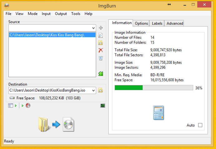 Here is an image of the settings. This was an attempt to burn directly to the disc. I also tried saving the ISO to the hard drive with the same settings.