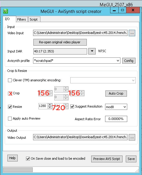 I am encoding a .mp4 720p movie video file to .avi Using MEGUI