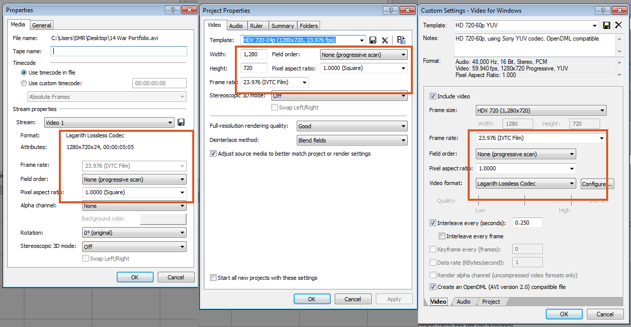 The only thing that I didn't manage to replicate is that 1280x720x24 of yours, I've got x32 there for me, but since I wasn't successful in finding out how to kick RGB24 out of Lagarith instead of RGB32 yet, I've decided to post back while I do my research.