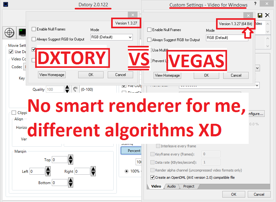 Then rendering that using Video for Windows, Lagarith, same settings as the original Dxtory ones.