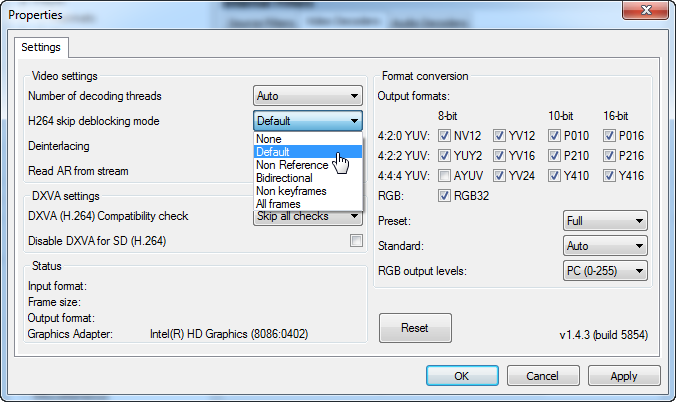 Decoder information just points to ffdshow.ax and Properties takes me to the standard ffdshow decoder configuration.