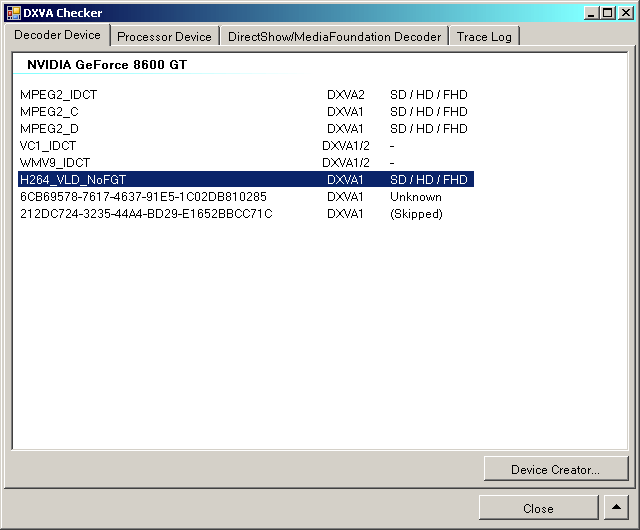 Thanks to both of you, it's good to have you here in this forum! . I'll follow the steps and post results. DXVA Checker has an option in the first page named ''Decoder Device'' that says ''Device Creator'', I played with it and created devices it's just interesting that when I tried to create a H.264 device with screen resolution of 1920 x 1080 it said ''failed'', a 1280 x 720 was created succesfully though but I don't fully understand what these results mean.