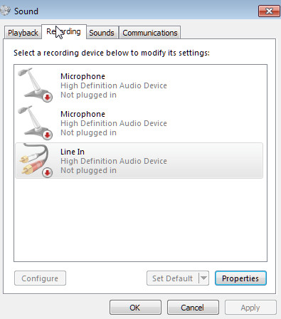Check your soundcard settings before bouncing from program to program.