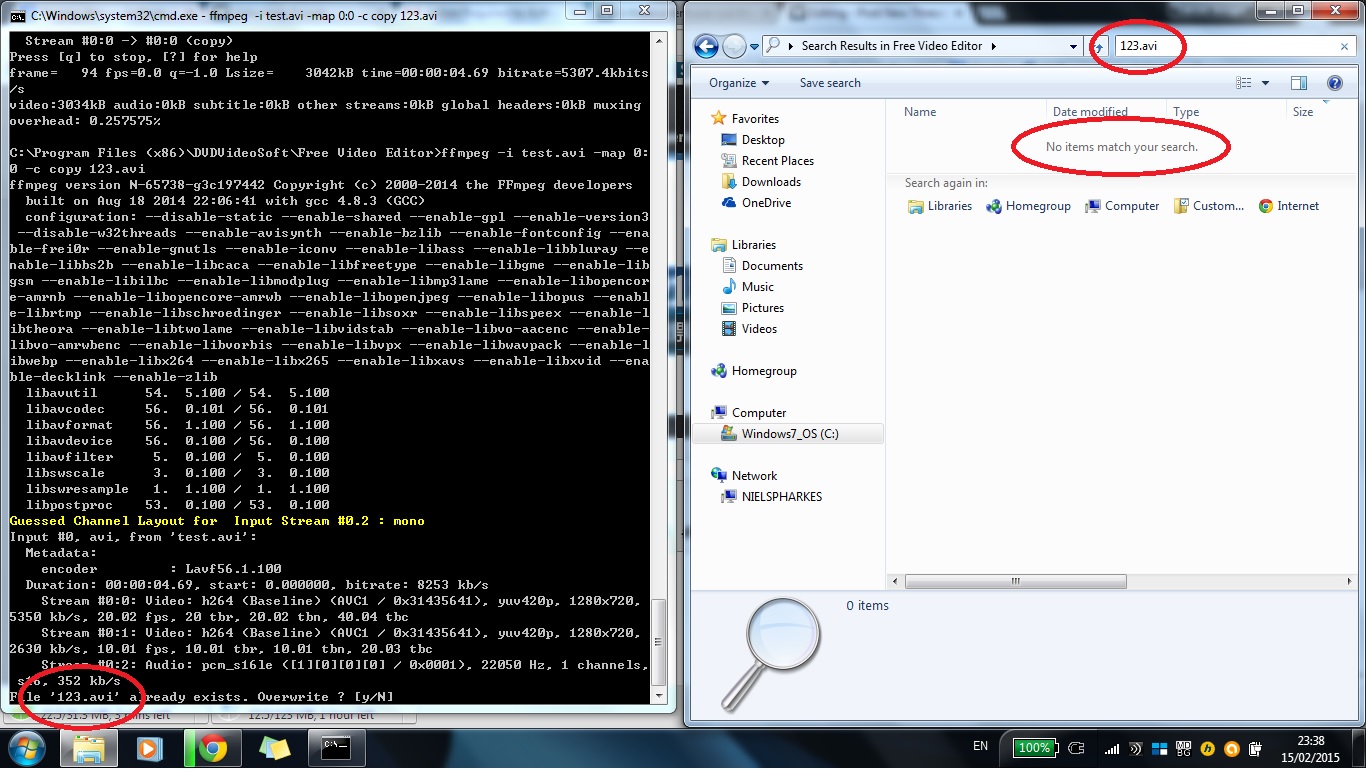 I am using "ffmpeg -i input.avi -map 0:0 -c copy output.avi" which seems to work, but where is my output.avi??? I cannot find it and if I redo the demux I am asked if I want to overwrite so it must be there?