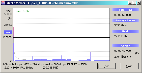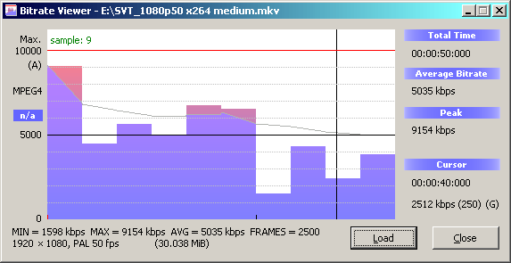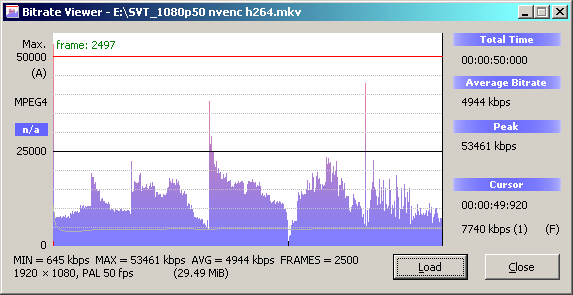 I had a bit more of a play with the samples from post #13. When you look at the bitrate distribution, it seems to show why the nvenc encode looks worse than the x264 medium preset encode at the beginning and better at the end. The closer I look, the less I think it's "trading punches" with an x264 average bitrate encode. Only in respect to the fact they're both fairly average, but the closer you look, the less similar they are.