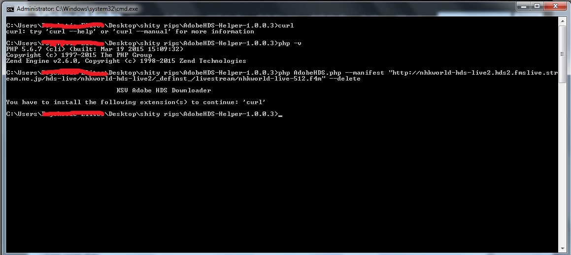 I have this adobehds.php in my system. I try to rip and says I need curl. What do I do.? any help would be appreciatedCode:php AdobeHDS.php --manifest "http://nhkworld-hds-live2.hds2.fmslive.stream.ne.jp/hds-live/nhkworld-hds-live2/_definst_/livestream/nhkworld-live-512.f4m" --delete