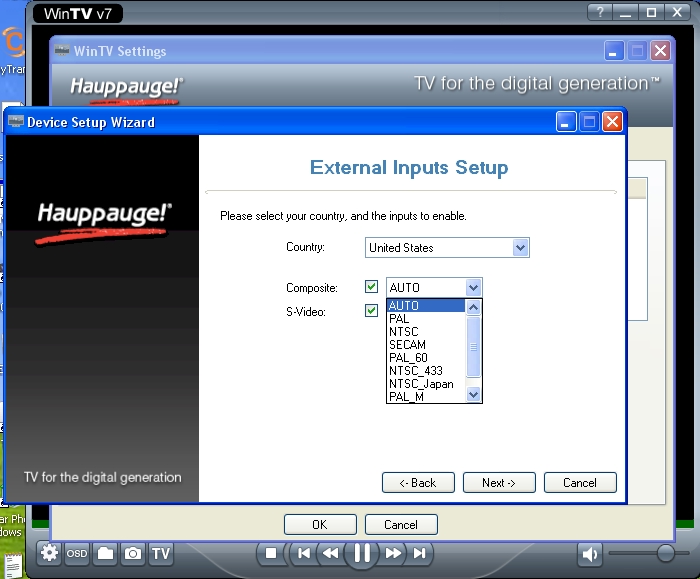 It's also not as easy as choosing PAL60 either in WinTV. You need to go through the wizard and install a new PAL60 tuner. Good thing it's easy to delete and install tuners in WinTV.....once you know that you need to do that. No need to run a channel scan either, S-Video and Composite are the channels.