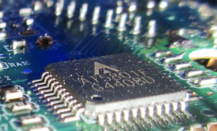 AT5801FG4408D This chip connects to the connectors going to the Pickup head. Possibly video processing.