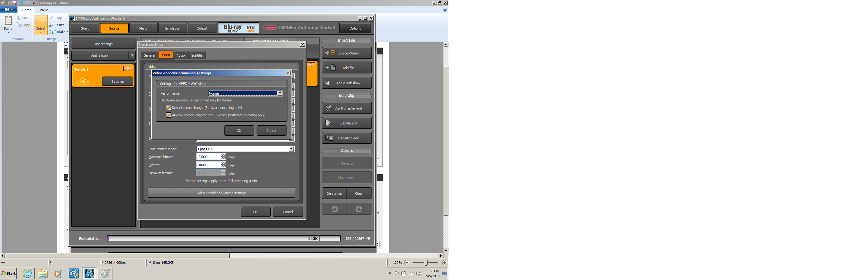 yeah the disc wont work in some blu ray players. I decided to go with tmpgenc authoring works 5. I like the options they have I went with the normal x264 preset with a 1 pass vbr(automatic smart rendering) started it last night about about 5 hours to go so far I think its been going for 20 or so hours lol. 1 pass vbr should be ok for that quality of a video right?
