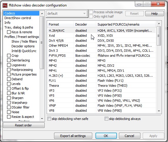 Open ffdshow video decoder (match 32 vs 64 bit with Potplayer)